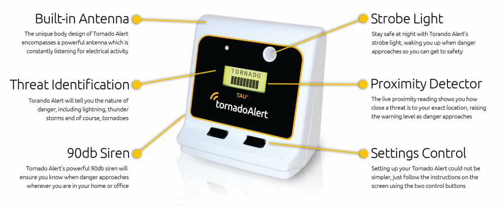 Tornado Alert is a scientific breakthrough based upon over 40 years of research. Unlike existing warning technologies, Tornado Alert constantly monitors the skies in real-time for electrical activity, the scientifically proven cause of tornado formation. Tornado Alert will tell you when a tornado, lightning or severe weather is detected within a 30 mile radius of your location, that’s up to 30 minutes warning with live proximity status, giving you with critical time to get to safety, day or night.